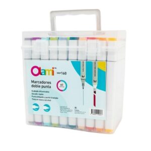MARCADORES DOBLE PUNTA OLAMI C/ESTUCHE x60 COLORES – MDP160