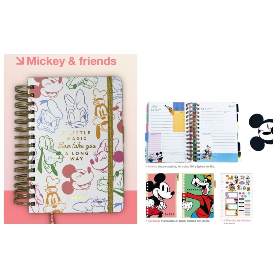 AGENDA 2026 MOOVING MICKEY & FRIENDS C/ESPIRAL 14x20cm DxP. – 1418253