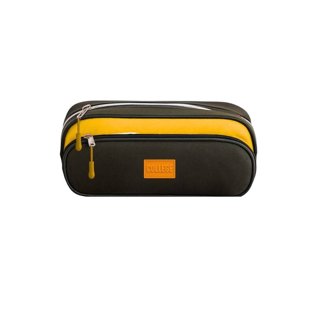 CANOPLA COLLEGE RECTANGULAR 2 CIERRES NEGRO- NARANJA/AMARILLO 22x8x11 cm