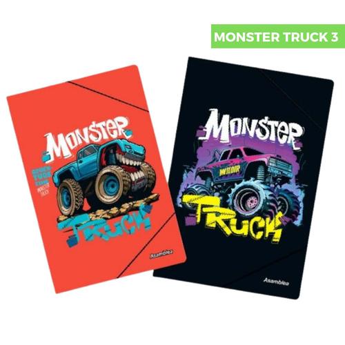 CARPETA 3 SOLAPAS CON ELASTICO MONSTER TRUCK 3