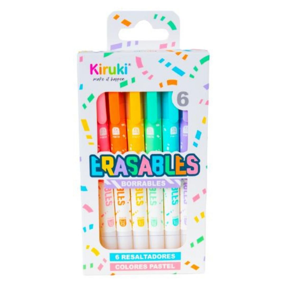 RESALTADORES BORRABLES KIRUKI x6 COL PASTEL – 180006