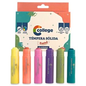 TEMPERA SOLIDA COLLEGE x6un. COLORES PASTELES
