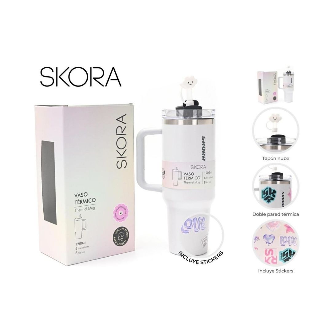 VASO TERMICO SKORA C/BOMBILLA Y TAPON NUBE 1200ml GRIS – 37194
